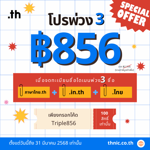 โปรพ่วง 3 เมื่อจดทะเบียนชื่อโดเมนพ่วง 3 ชื่อ
