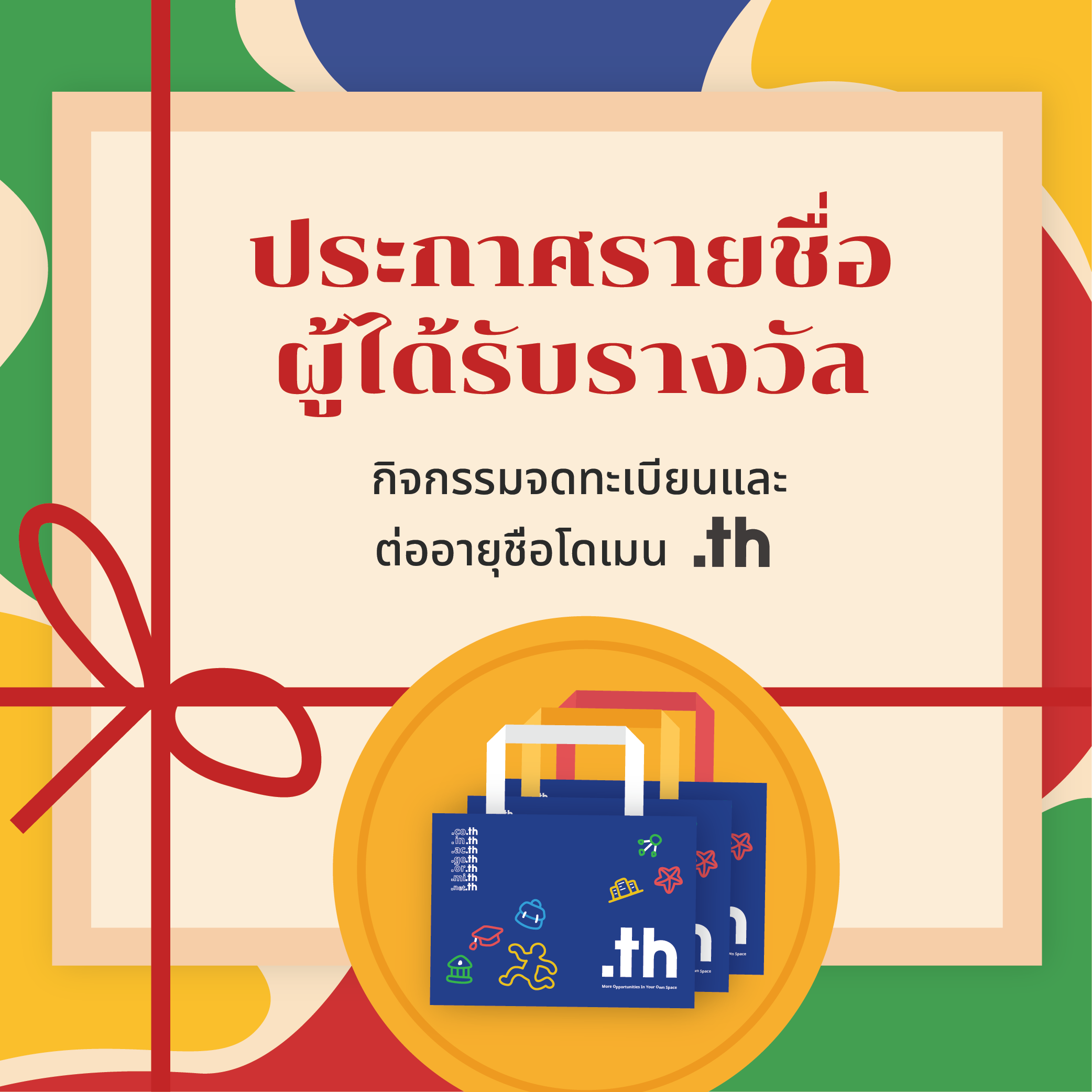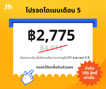 เพียงจดทะเบียนโดเมนใหม่ .co.th หรือ .in.th ไม่จำกัดจำนวนปี ลุ้นรับรางวัลในวันมงคลเดือนเมษายนนี้