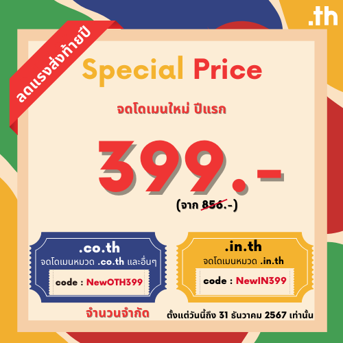 จดโดเมนใหม่ปีแรก ราคาเดียว 399 บาท