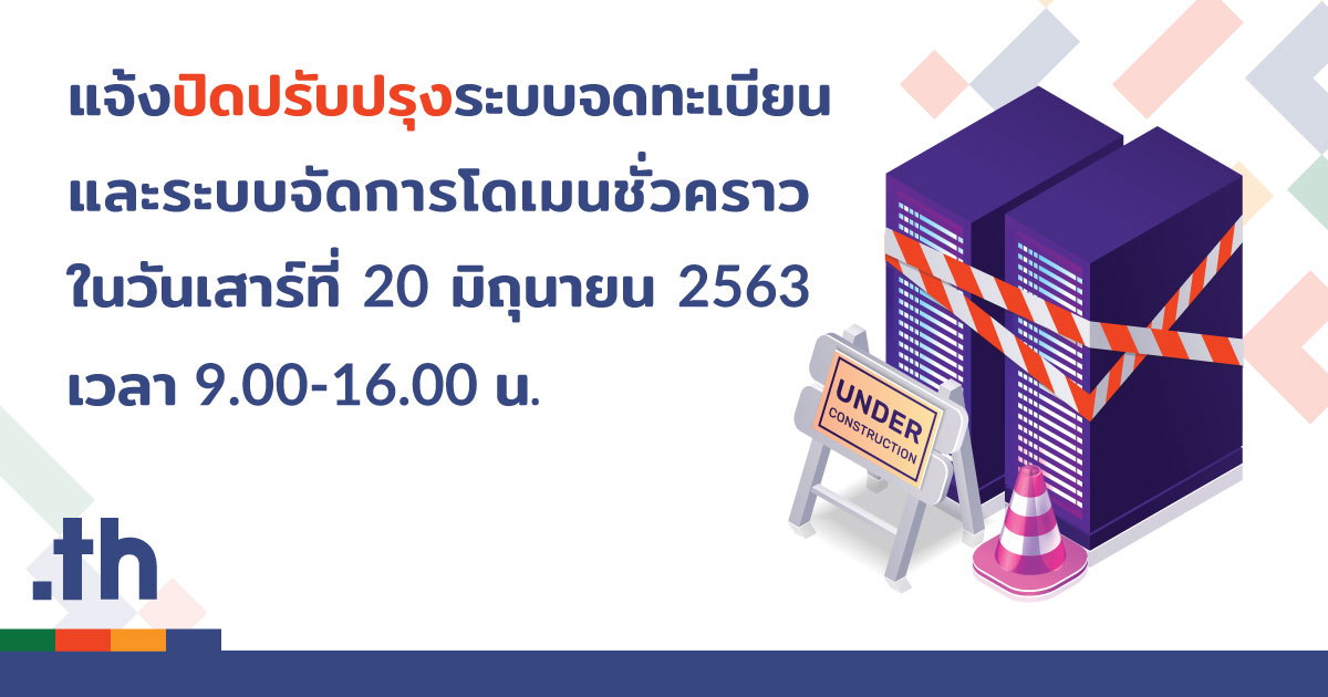 ประกาศแจ้งปิดปรับปรุงระบบจดทะเบียนและระบบจัดการโดเมนชั่วคราว ในวันที่ 20 มิถุนายน 2563